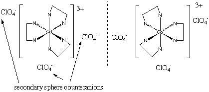 20.* (1992 F 25) Consider the diamagnetic complex [M(en)3(ClO4) 3] where M is a 3d metal. A. What is M? M is Co (which is d6 in its III oxidation state.) B. What is the oxidation state of M? The oxidation state is III, because each ClO4- has a -1 charge. This way, we can also have a low-spin system. C. How many d electrons? There are 6 d electrons. D. Will this complex be a strong oxidizing agent? To be a strong oxidizing agent the complex must gain electrons easily. However, any electrons this complex gains will go into the high energy eg antibonding orbitals. Therefore, this compound wont be a strong oxidizing agent. E. Sketch a picture of all stereoisomers of this complex.