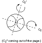 Given this baseball (and assuming it looks the same from behind), we have the following symmetry elements: