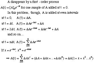 5.* (1995 F 11) In many contamination processes, the contaminating species A dissappears by first-order kinetics with a rate constant k in the process given by A. Suppose that a constant quantity DA of the contaminant A is added