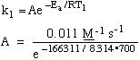 Use this data to estimate the activation energy Ea and the pre-exponential factor A given that the universal gas constant R has the value 8.314 JK-1mol-1. State clearly the units of Ea and A.