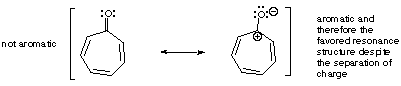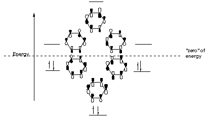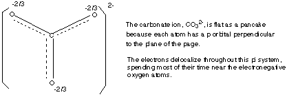 Nomenclature: Read the review at the end of your course reader. While you dont need to memorize the common names of all the obscure molecules cited in class, you should know some of the simpler, more common ones like acetic acid and acetate, formate, allene, and THF (tetrahydrofuran). You should also be familiar with the common aromatics like benzene, pyridine, imidazole, and cyclopentadienylide anion. Hybridization: Many of the organic elements (principally carbon, nitrogen, oxygen, etc.) use hybrids of their valence orbitals instead of the orbitals themselves in bonding. They do this because electrons repel each other, and hybrid orbitals allow the electrons to be as far apart as possible. On problem set 3, you will prove that the four sp3 hybrids form a tetrahedron; a tetrahedron is the farthest apart you can get 4 orbital lobes (try it!). By conservation of energy, the sp3 hybrid orbital has energy _ of the way up between the lower energy s orbital and the higher energy p orbitals. Sometimes an atom cant use all of its p orbitals to make the hybrid because it needs an untampered-with p orbital to form a pi bond. If a p orbital is left out of the hybridization, it is perpendicular to the remaining hybrid orbitals because the other hybrids were made from the other ps, and the 3 p orbitals are perpendicular to each other. The perpendicularity of the 3 p orbitals is evident in derivatives of allene. Derivitives of allene form classic hybridization and symmetry problems that show up frequently on Chem 32 examinations. The molecule allene is shown below. The central carbon is sp hybridized. It uses one of its p orbitals (say for example the one in the plane of the page) to make a double bond to the leftmost carbon. Since that carbon is using a p orbital in the page to bond, its remaining sp2 hybrids must be perpendicular to that. Therefore the Hs on this carbon are coming out of and going into the paper, respectively. The central carbon uses the other of its p orbitals (in this example, the one perpendicular to the plane of the page) to make a double bond to the rightmost carbon. Therefore, the remaining sp2 hybrids of the rightmost carbon are in the plane of the page. Note that this molecule has an S4 improper rotation axis. If the Hs were some other group, however, the molecule would not possess this symmetry element. Formal Charge: Each atom in a molecule has a "formal charge," which equals the number of valence electrons in the neutral atom minus the lone pair that the atom has in the molecule minus half the electrons in each bond. Note that it is possible to have an atom with "half a bond" via resonance (see below). The sum of the charges of the atoms in a molecule always equals the charge on the molecule. Charged molecules or atoms are typically less stable than neutral molecules or atoms, and this is especially true when the positive or negative formal charge is on carbon. For this reason, charged derivatives of carbon are especially reactive (unstable, high energy) meaning that they want to get rid of their charge. In addition, atoms want to follow the octet rule, so radicals, or atoms possessing an odd number of total electrons, are also unstable and reactive. Saturation: Saturated molecules are literally saturated with hydrogen atoms; because of this they have no double or triple bonds and they have two ends. Every ring and pi bond counts as one site of unsaturation. For pure hydrocarbons, the number of sites of unsaturation can be calculated mathematically using the formula sites of unsaturation = (2n+2-m)/2. For the purposes of this formula, it is necessary to subtract 1 from m for each nitrogen occuring in the molecule and to count halogens as a hydrogen atom. Oxygen and sulfur can be ignored. It is usually easier to ignore the formula and count sites of unsaturation directly from a picture of the molecule, but you should know the formula in case youre not given the picture. Resonance: The electrons in alternating pi bonds can delocalize over all the atoms involved in the pi bonded system. This stabilizes the system because electrons repel each other and want to be far apart. Anytime p orbitals are lined up next to each other this will occur, because electrons always jump at the chance to have more space. In a carbocation or carbonium ion (a carbon atom in a molecule that has a plus charge), the positive charge is localized in a p orbital. When this p orbital lines itself up parallel to a pi bond, the system is stabilized by resonance because the electrons in the pi bond bleed extensively over to the attractive positive charge next door. In such situations, the bond is really more like a fraction of a bond. This configuration is called an "allyl cation." Another example is the carbonate anion, which has p orbitals on every atom. Can you draw the three resonance structures contributing to this overall picture? Aromaticity: Long chains of alternating (conjugated) pi bonds have a special stability because theres lots of opportunity for the electrons to move. Benzene has 6 p orbitals lined up parallel and in a ring: the electrons are in delocalization heaven. They whir around and around through the p orbital system like a snake chasing its tail. Anytime every atom in a ring has a parallel p orbital and there are 4n+2 pi electrons, the molecule will do the benzene thing and be: 1. flat as a pancake (this is necessary for the p orbitals to be able to line up parallel to each other), 2. exceptionally stable. Why exactly 4n + 2? This requires some rather complex MO theory. Basically, if you derive all of the MOs, youll find theres room for exactly 4n + 2 electrons in the "bonding" (i.e. below the energy of the atomic p orbitals) MOs. This is Huckels Rule. Putting electrons in low energy orbitals makes a molecule stable. Molecules that have conjugated systems (i.e. alternating double bonds in a ring) but do not have exactly 4n + 2 electrons are anti-aromatic, meaning that they are: 1. 
