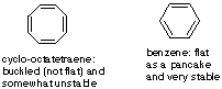 cyclo-octatetraene's electrons are in molecular orbitals that are higher in energy than the atomic p orbitals of carbon. These electrons destabilize the cyclo-octatetraene molecule.