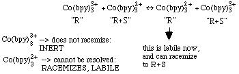 For the outersphere mechanism: DH = 0, DS => (+) positive (racemization causes more disorder). The driving force for the reaction is an increase in entropy. |