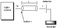 2. * (1997 F 16) Beers Law and kinetics. (NOTE: This problem contains both spectroscopy and kinetics. Before understanding kinetics, its not going to make much sense.) A cylindrical tube of length l and radius r is placed between a light source of wavelength l and a light detector.