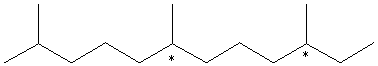 This compound has 2 stereocenters which are marked. Each of these can be R or S, so there are 4 stereoisomers: RS, RR, SR, and SS. Hydrogenation is not stereospecific, so all of these stereoisomers will be present in equal amounts, creating a racemic mixture with no optical activity. C. Is there any conjugation in this molecule? Conjugation in E-b-farnesene is circled above. D. Where does the "E" come from? E is an abbreviation of the German "Entgegen." The middle double bond can have two conformations. The higher-priority (longer) carbon chains can be on the same or opposite sides of the bond. In this case they are opposite. Entgegen means "opposite," and Z (Zusammen) means "together." |