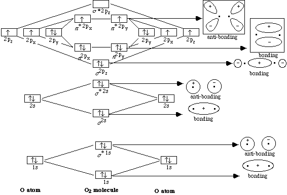 Structure and Bonding Solutions: #1010.* (1990 F 10) Discuss the molecular orbital picture for the electrons on O2. Draw pictures of the different orbitals, state the occupation number in each, and describe the overall electronic structure of ground state O2. Indicate which orbitals are bonding, anti-bonding, nonbonding, or atomic like.