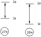 The energy difference between the 1s and 2s levels is higher for Ni, so the Ka x-rays emmitted by Ni will have a greater energy than the Ka x-rays emmitted by Co. C. In 1913, a young British scientist named Henry Mosely used Ka x-ray emmission to put the elements of the periodic table into their proper order by atomic number. How did he do it? Why didn't atomic mass make a difference? The energies of the Ka x-rays emmitted by the elements increase with increasing atomic number, so Mosely simply put the elements in order by their Ka x-ray energies. The isotopic differences in atomic mass don't matter because these arise from differences in numbers of neutrons, which are not charged. |