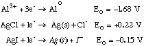 27.* (1993 3 1C) C. At the time Stanford was founded, aluminum metal dinner plates were more expensive than solid silver plates whereas today the opposite is true. Explain. Look at Eo From natural sources, oxides and/or salts, reducing Al to Alo will be more difficult since it is highly thermodynamically unfavorable Not true for Ag salts. It was difficult to find reducing agent with Eo > +1.68 V until electrolysis was perfected ~1900 A.D. |