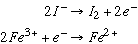31.* (1992 2 6) A. Using the standard reduction potentials below, deduce the standard potential of the following reaction which occurs in aqueous solution: 2Fe3+ + 2I- --> Fe2+ + I2.