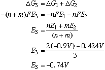 Note: It is OK to add voltages in this case because we are dealing with a balanced reaction. However, if we were dealing with a half-reaction, you'd have to convert to free energy values. (DGo=-nFEo) B. Using the standard reduction potentials below, deduce the standard potential of the reduction of Cr(III) to Cr metal.