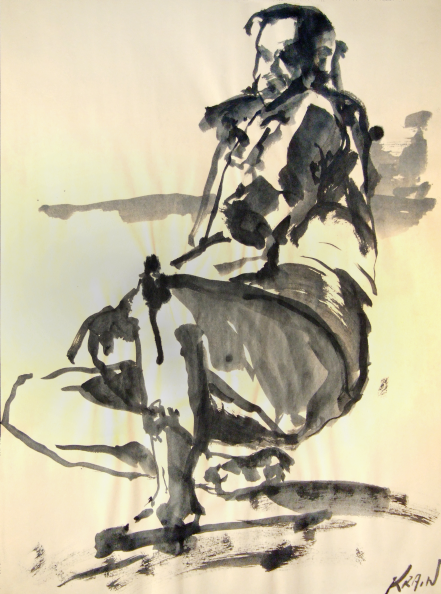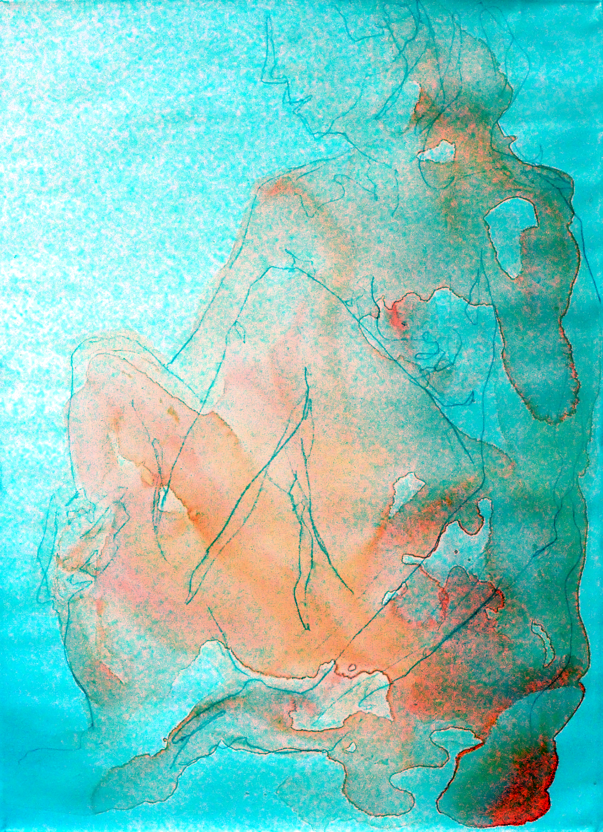 graphite, chalk pastel, india ink, watercolour