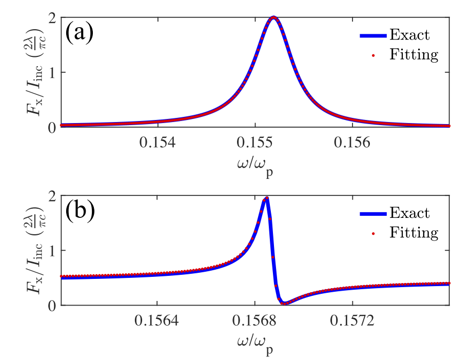 of force spectra and their dependencies on resonant scatterers for arbitrary incident wavefronts. I obtained closed-form formulae and discuss the conditions for achieving symmetric as well as asymmetric lineshapes, pertaining, respectively, to a Lorentzian and Fano resonance. I exemplified the