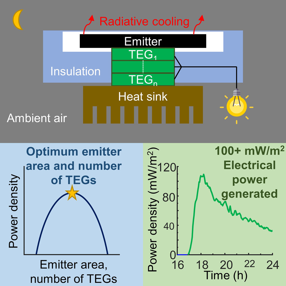 Impact: This system combines radiative cooling and thermoelectric power generation and operates at night