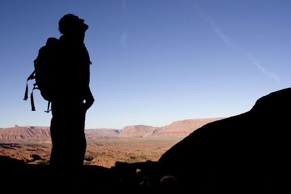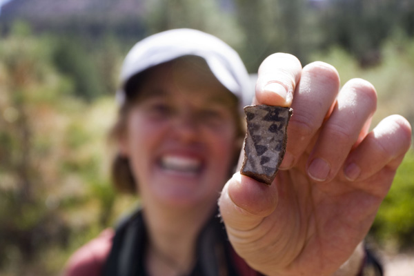 Lauren B with the eagle eye for pottery shards, Dark Canyon UT