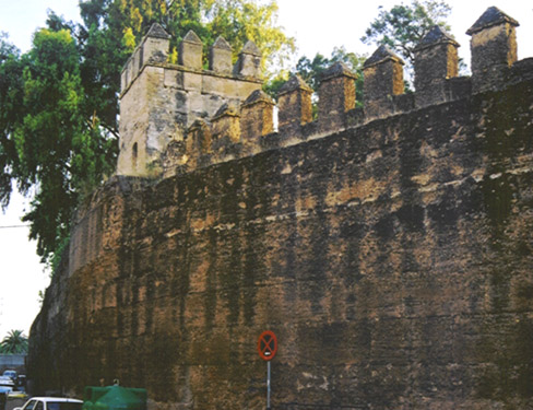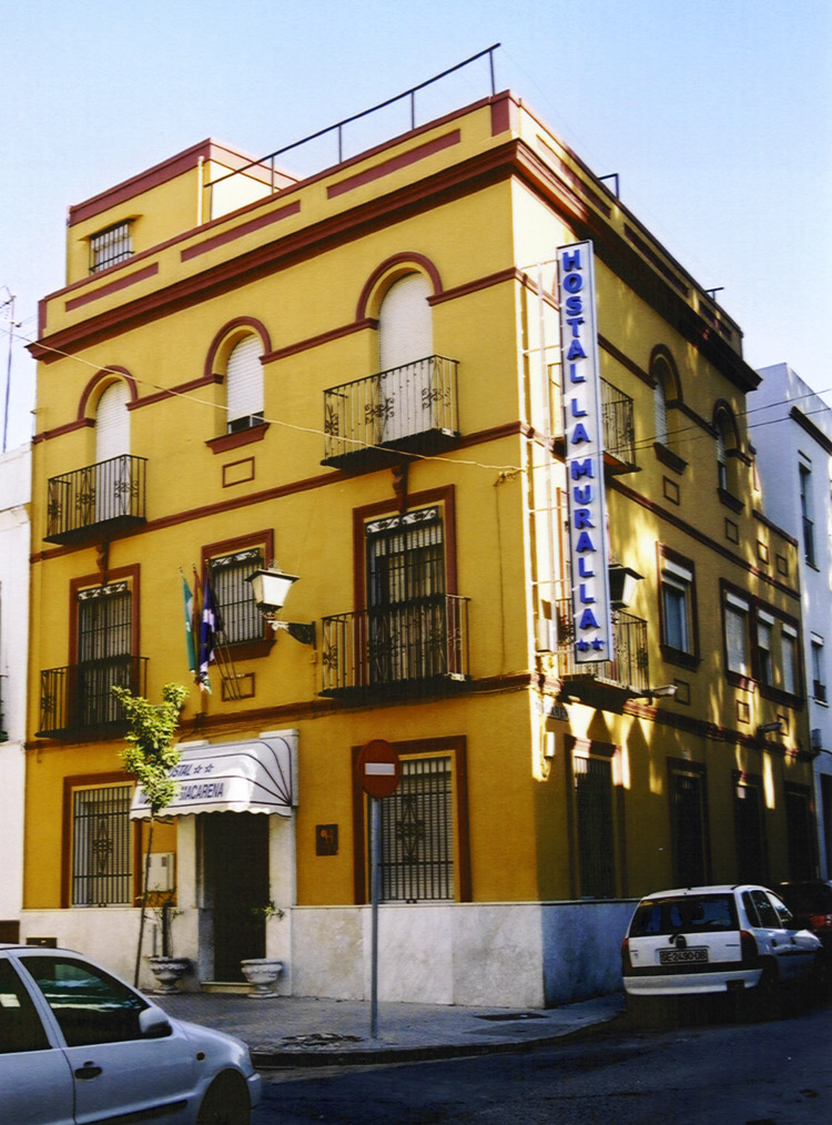 We managed to get off the highway (N-IV) into Sevilla—actually the road seemed to stop there (it does go on further south). We even found our hotel, La Muralla, in Macarena (northern part of Sevilla), but found no parking. I went in and found out there was a garage we could use down the street. The woman who met us speaks French so we got along. I think it was same woman who talked to me when I called and later to Fede when he called (her name was Gloria). Unfortunately, we never saw her again to confirm. We were just inside one of the few remaining sections of the old walls that used to surround all of Sevilla—hence the name of the hotel. I always felt like we were coming home to safety inside the walls for the four nights we stayed there.