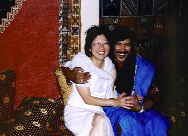 The hotel, Hotel Oudaya, also comes with breakfast—out on the terrace by the pool. It was served buffet style—like in Madrid. In the morning we had our city tour. Of course we went into the medina and had the hard sell by various kinds of merchants. The rug salesman in particular really tried to schmooze us, even though he had been told that we had already bought an Arabic-style (deep pile) kind of rug in Tetouan. He tried to sell us a kilim (flat weave) instead. He was quite a flirt as well—offered 5,000 camels to Philip for me. Philip refused saying what would he do with a bunch of camels! We also stopped at a wood store—saw many beautiful boxes, bowls, and animals—but just bought a little turtle for Emily.