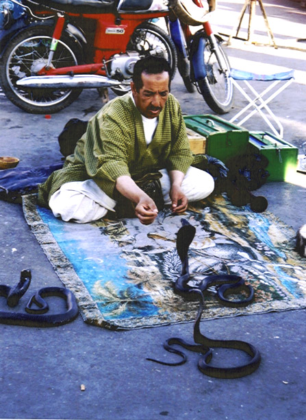 On a restaurant on the square, we took coffee and orange juice (for four times what I paid on the square) to rest and get a view from a terrace. It was more exciting at night when we had had our first glimpse of the square. We negotiated a horse-driven carriage ride almost back to our hotel. It was a pleasant way to get back to our hotel, even on Mohamed Avenue because of honking cars and exhaust fumes.