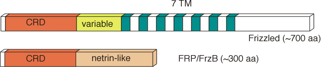 Frizzled proteins are seven-transmembrane receptors. There is biochemical and genetic evidence that Frizzleds act as receptors for Wnt proteins, in particular in the case of Frizzled and Dfrizzeld2 interacting with Wingless in Drosophila. Wnts can bind the the CRD (cysteine-rich domain) of Frizzled, an extracellular part of the receptor. The structure of the CRD has been solved by Dann (2001) FRP/FrzB molecules consist of the CRD only and can act as secreted antagonists of Wnt signaling. Little is known about the mechanism of Frizzled signaling. Some but not all Frizzleds stimulate Ca release and PKC activity.