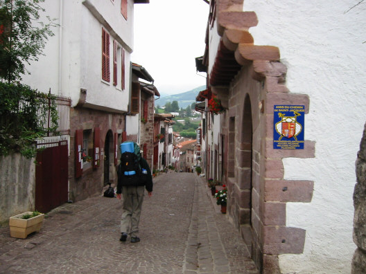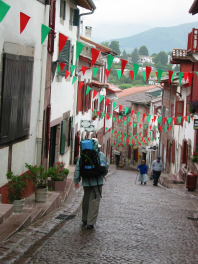Traditionally, the Camino Frances begins in the border town of Saint Jean Pied de Port, at the foot of the Pyrenees. It is here, 774 kilometres from Santiago de Compostela, that the pilgrimage routes through France converged for the crossing of the mountains into Spain. In the French Basque country (Euskera), the ubiquitous pennants of green and red made the sense of nationalism hard to miss.