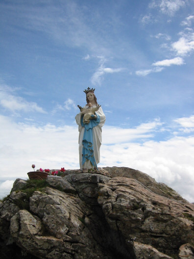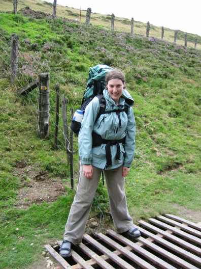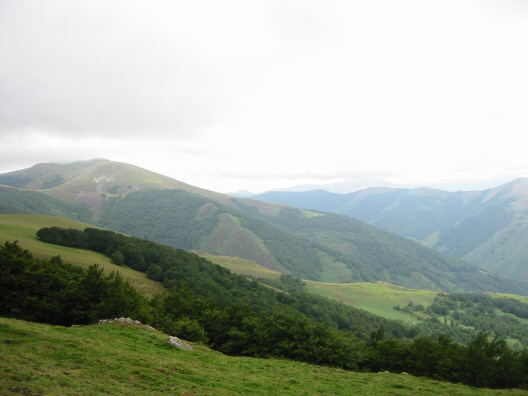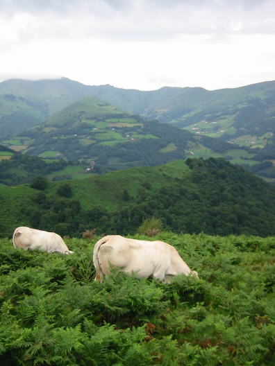 The Vierge d' Orisson provided an important way mark upto the border with Spain. Looking back, we had our last glimpse of the valleys of Basque France. Ahead, lay the Col de Bentarte over to Spain. The border itself was marked by a cattle grid-- yet another dastardly attempt to oppress the international bovine fraternity.