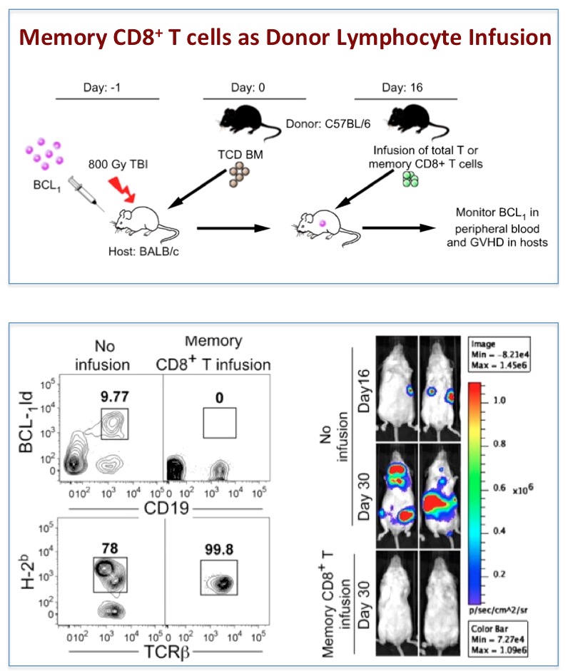 My research intends to improve therapeutic efficacy of DLI in relapsed B cell lymphoma following non-myeloablative bone marrow transplants through infusion of donor memory phenotype CD8+ T cells.