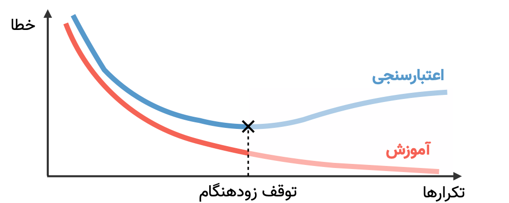 توقف زودهنگام این روش نظامبخشی، فرآیند آموزش را به محض اینکه خطای اعتبارسنجی ثابت میشود یا شروع به افزایش پیدا کند، متوقف میکند.