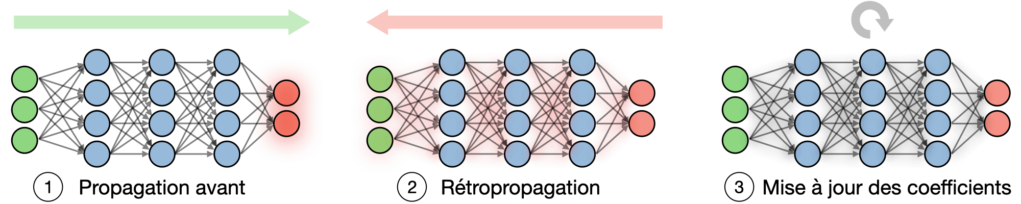• Étape 3 : Utiliser les gradients pour mettre à jour les coefficients du réseau.