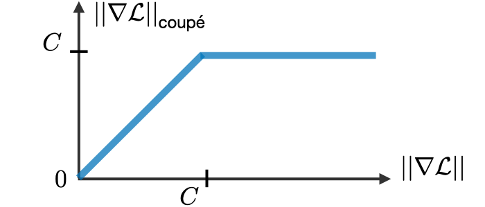 Coupure de gradient Cette technique est utilisée pour atténuer le phénomène de gradient qui explose qui peut être rencontré lors de l'étape de backpropagation. En plafonnant la valeur qui peut être prise par le gradient, ce phénomène est maîtrisé en pratique.