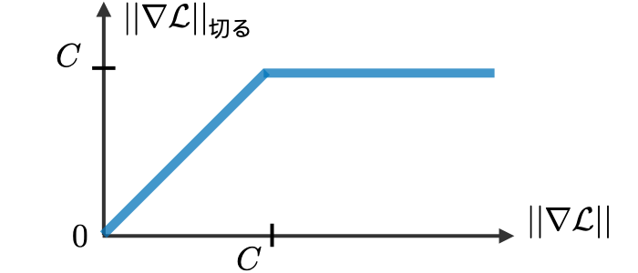 勾配クリッピング 誤差逆伝播法を実行するときに時折発生する勾配爆発問題に対処するために使用される手法です。勾配の上限値を定義することで、実際にこの現象が抑制されます。
