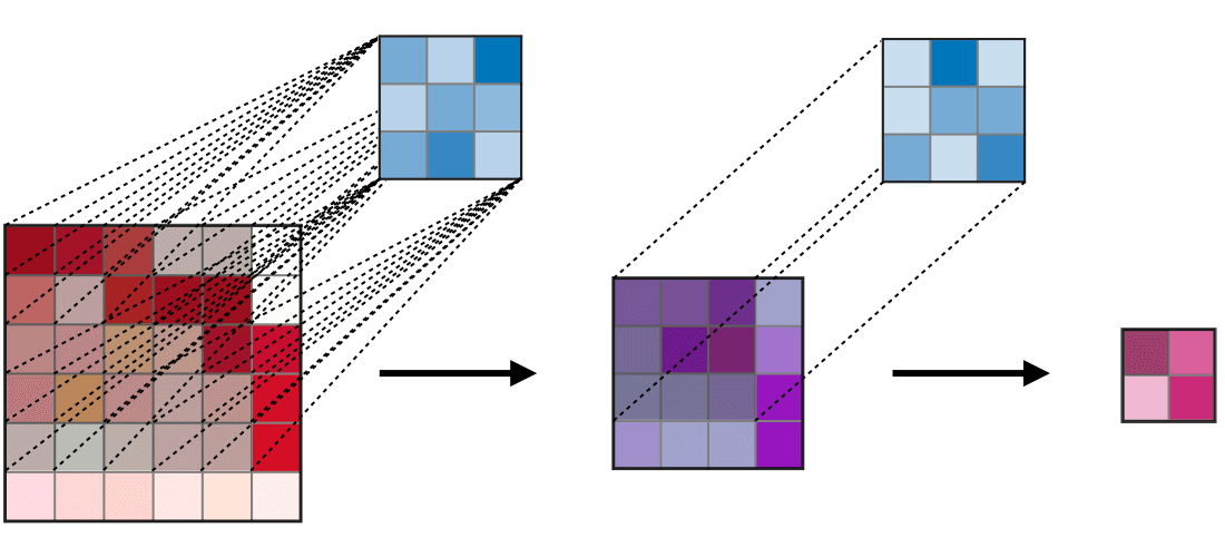 Adım aralığı Evrişimli veya bir ortaklama işlemi için, $S$ adımı (adım aralığı), her işlemden sonra pencerenin hareket ettiği piksel sayısını belirtir.