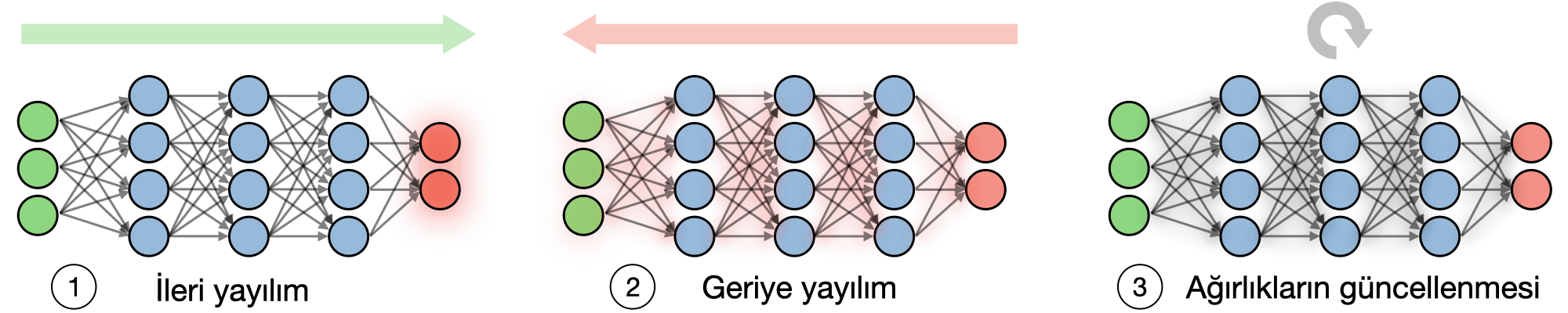 • Adım 3: Ağın ağırlıklarını güncellemek için gradyanları kullanın.