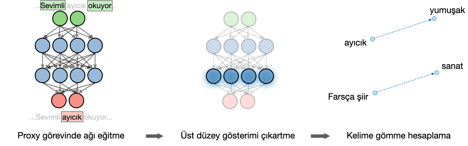 Not: Öğrenilen kelime gömme bileşenlerinin ayrı ayrı bileşenleri tam olarak yorumlanamaz.