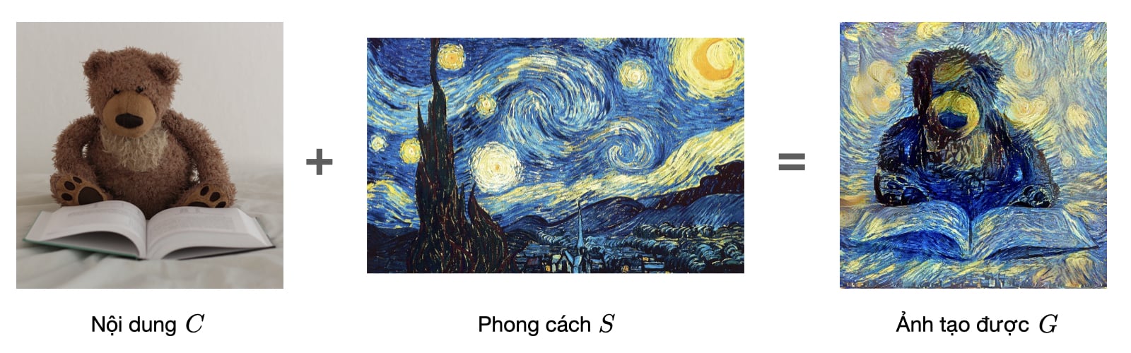 Ý tưởng Mục tiêu của neural style transfer là tạo ra một ảnh $G$ dựa trên một nội dung $C$ và một phong cách $S$.