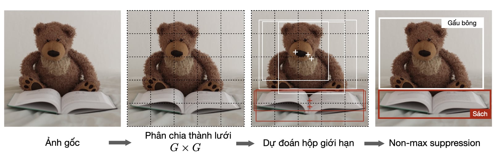 • Bước 1: Phân chia tấm ảnh đầu vào thành một lưới $G\times G$.