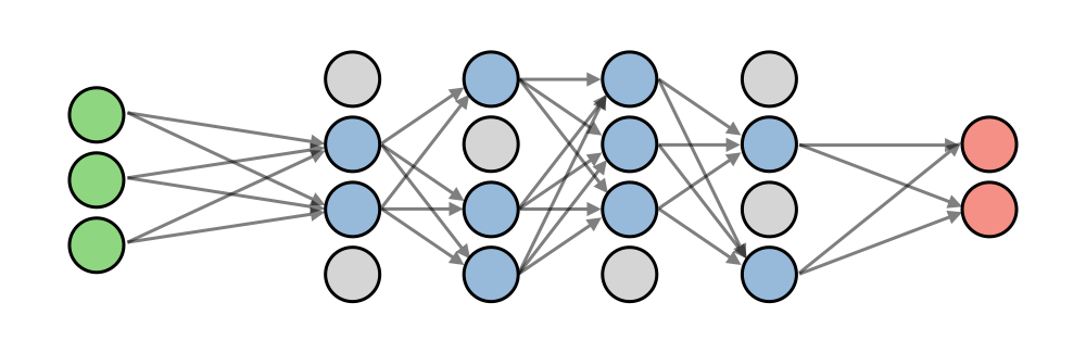 Dropout Dropout is a technique used in neural networks to prevent overfitting the training data by dropping out neurons with probability $p >0$. It forces the model to avoid relying too much on particular sets of features.
