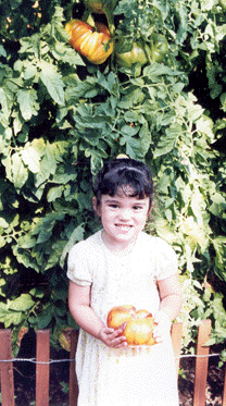 5-year-old Elizabeth with a big tomato.