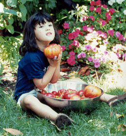3-year old Elizabeth with a big tomato.
