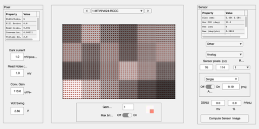 camera = cameraSet(camera,'ip demosaic method','nearest neighbor'); camera = cameraCompute(camera,scene); cameraWindow(camera,'ip');