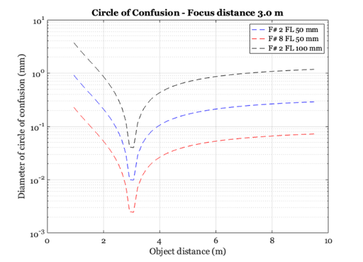 title(sprintf('Circle of Confusion - Focus distance %.1f m',oDist(oo)));