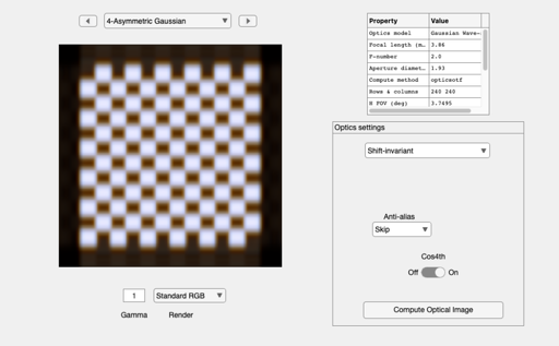 This script illustrates how to create shift-invariant optics. The diffraction-limited optics is a special case in which the point spread function is derived. This is the more general case where the shape of the point spread function can be anything.
