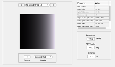 scene = sceneCreate('exponential intensity ramp',sz,dRange);