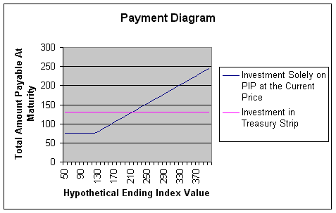 6.3 Other investments - Investing in the underlying Index and hedging through T-Bills: As the payment graph demonstrates, investing in the underlying index is very comparable to investing in the PIP without incurring the 0.4375% quarterly reduction in the Index value. To ensure some protection, one could invest in a treasury strip.