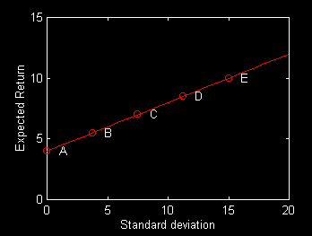 Now examine the figure below in which each circle plots the expected value and standard deviation of a different portfolio.
